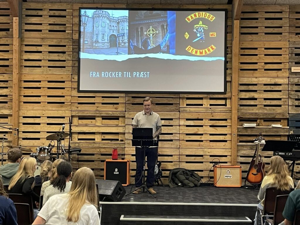 Vi havde i vores fællestime besøg af præsten Martin Bentsen, som – inden han mødte Gud – var hårdkogt kriminel, sad 13 år i fængsel og var medlem af rockergruppen Bandidos.
